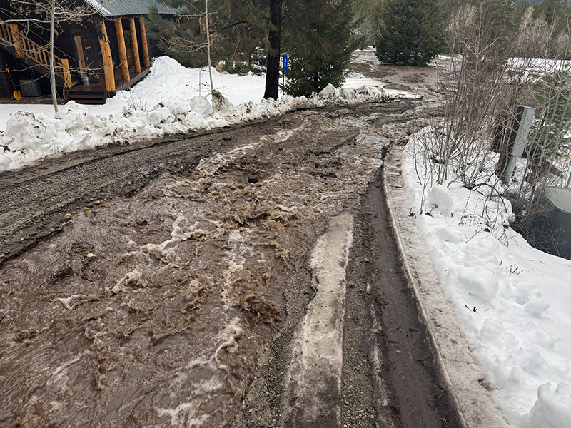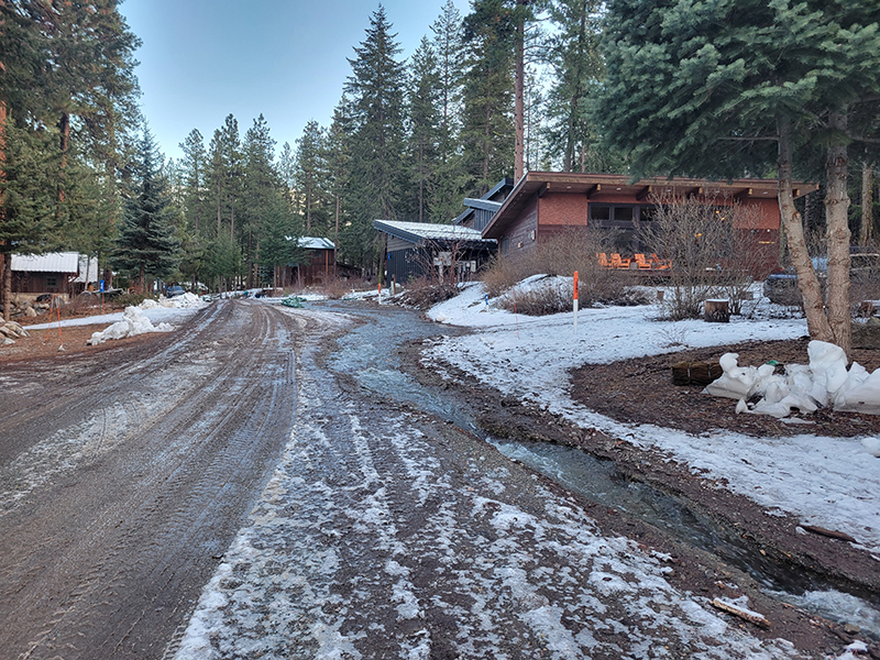 This new creek and channel is a challenge and it is not one our HOA can solve. We can’t put the creek back because engineering and excavation would need to occur on Forest Service land. Further, last spring, the creek could not hold the volume of water that was coming off the bluff. Anything we do to divert it could cause someone else’s property to be impacted. This requires specialists and a whole-valley stormwater mitigation plan, which we don’t currently have but are now working on with entities such as Emergency Management, DNR, the Forest Service, the Department of Transportation, the Army Corps of Engineers, and the communities up and down the valley that are impacted. The plan now is to let the creek flow as Mother Nature directed and rework our road system around that.